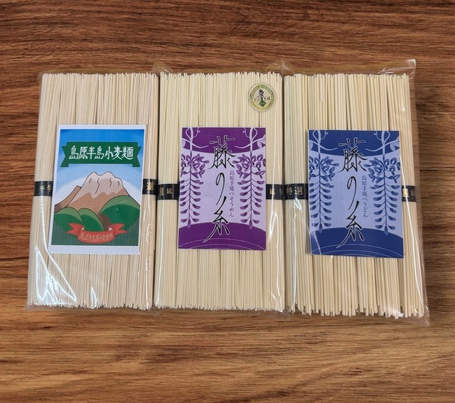 弊社商品で長らく愛される『島原手延そうめん 藤の糸』と『島原半島小麦麺』を同時に味わえるセットです。 種類の違う手延べ麺を是非ともご賞味下さいませ!